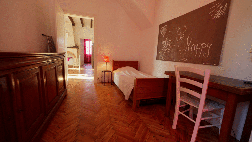 Une 5ᵉ chambre ou un bureau peut être aménagé dans la pièce traversante attenante au salon.